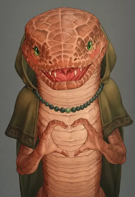 1girl, no humans, snake, green eyes, monster, scales, teeth, fangs