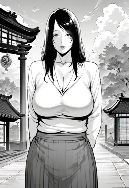 (( lora:shiori:1 , shiori, piercing eyes, clear eyes, bright pupils, beautiful eyes, beautiful hair, beautiful long hair, very huge and shaggy breast, normal waist, wide hips, beautiful skin, beauty, extraordinary beautiful woman, attractive woman, super sexy woman, lustful body, sexy woman with seductive obscene body, sensual body, voluptuous body, sexy milf, ))
