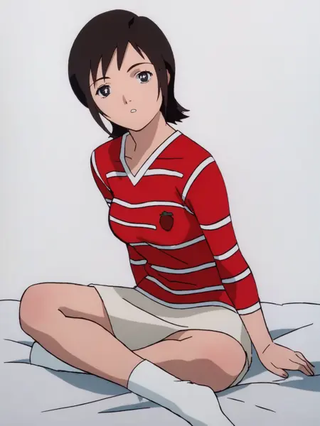 mizuki alice, red-white striped shirt, tan skirt, white socks