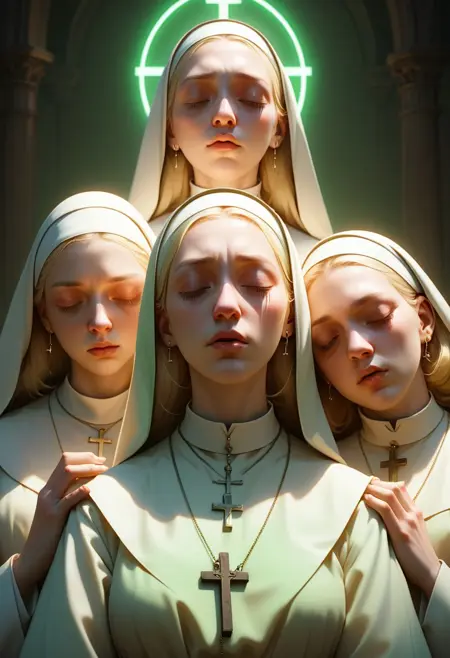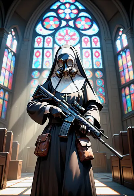 Ever had religious trauma? Well now you will (kidding) with Irreverant, and entirely sacreligious nuns from two plural systems that grew up religious but entirely can't give two shits about society (kidding). NUNS WITH GUNS! Old nuns smoking cigars! DEMONIC HENTAI NUNS! Pushing the boundaries of both our mental limits for lulz. This builds on their Demonic Nuns with added Midjourney & Nijijourney data. XL & Pony, but be aware only Pony has offsite tested images.