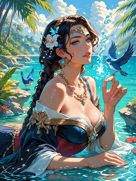 我修改了上色风格,增加了一些效果,优化了整体构图,并修正了一些身体错误。