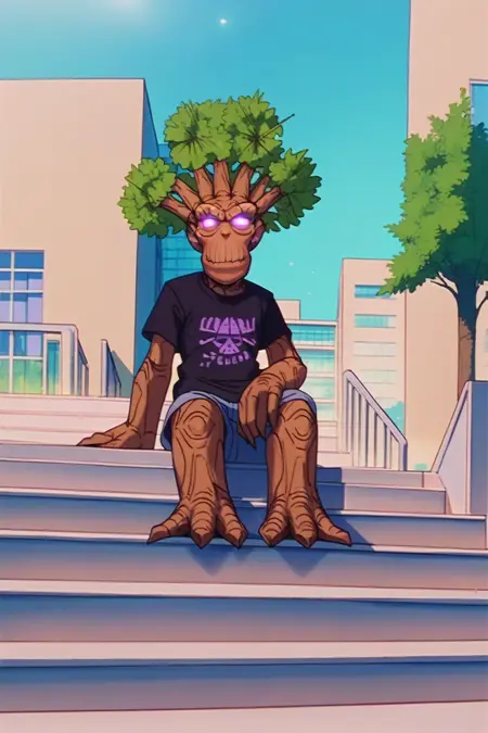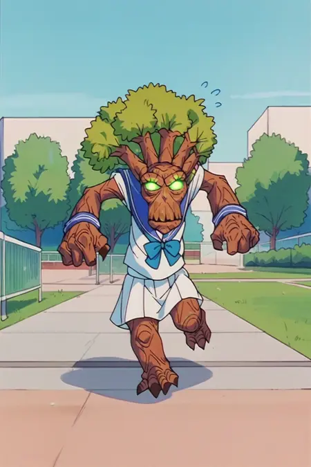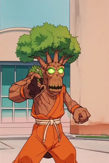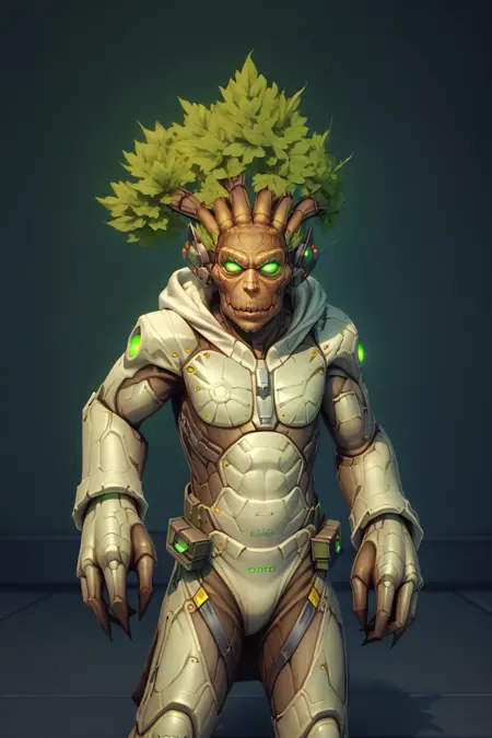 《魔兽争霸3》中的树人。你可以用它来做各种用途,比如假装它是你治疗德鲁伊主号的粉丝艺术,给他打扮一番并带他四处走动,LoRA 的灵活性较高。但有一个问题是,有时它会生成“耳朵手”,而当你提示更复杂的内容时,比如特定姿势,它可能表现不佳。