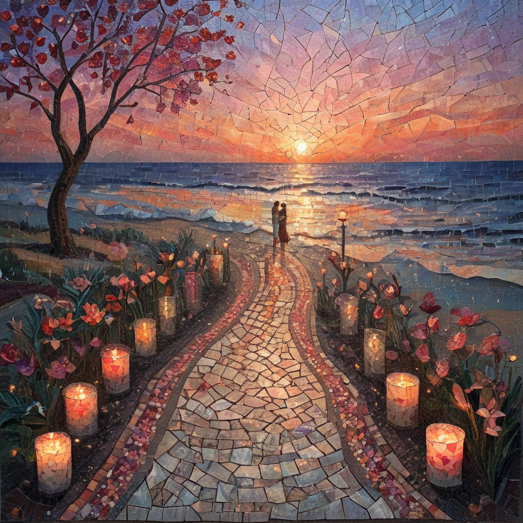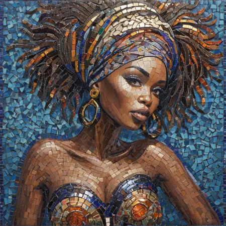 The Lora is trained on MidJourney Images that use my "Personalised Style" + Mosaic.