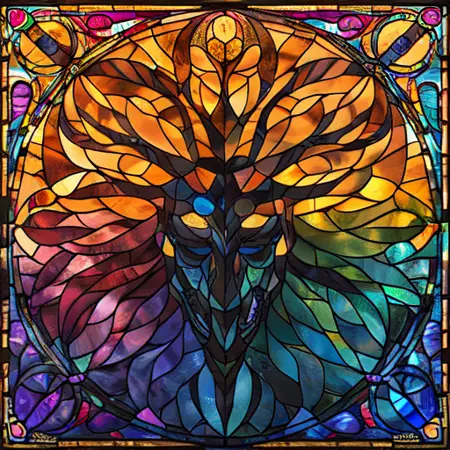 The Lora is trained on MidJourney Images that use my "Personalised Style" + Stained Glass.