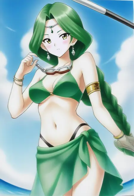 扎尔卡:Zarbonia,绿皮肤,绿头发,发辫,珠宝,过膝袜,紧身衣贴合痕迹,赛亚人装甲,探测器