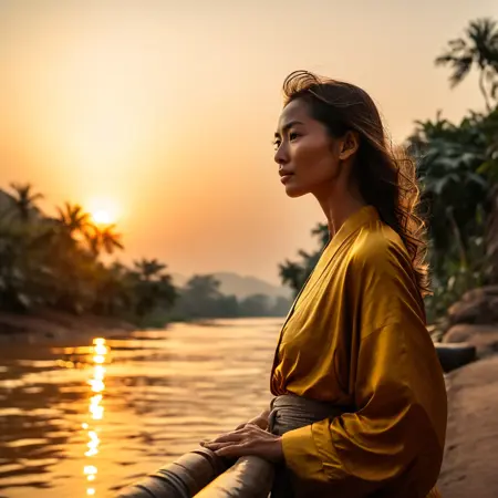 捕捉黄金时刻的魔幻光线。采用哈苏60mm镜头拍摄,4K高分辨率,温暖色调与金色光晕营造出宁静平和的氛围。适合自然与放松的场景。图像沐浴在温暖的金色光芒中,凸显自然之美,营造出宁静祥和的意境,是风景摄影、人像拍摄及任何需要温暖邀请感场景的绝佳之选。