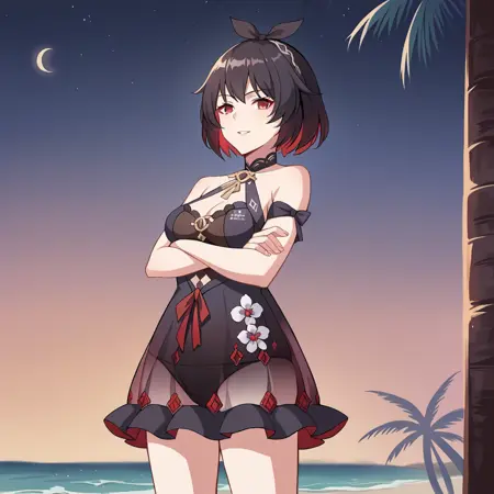 Disclaimer: Add "white top" to Negative Prompt. Same as with Default outfit, the top part sometimes can be white for some reason.