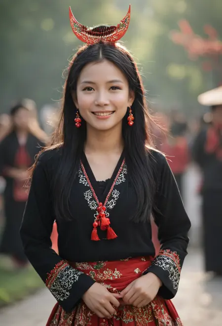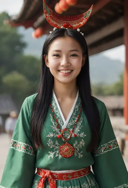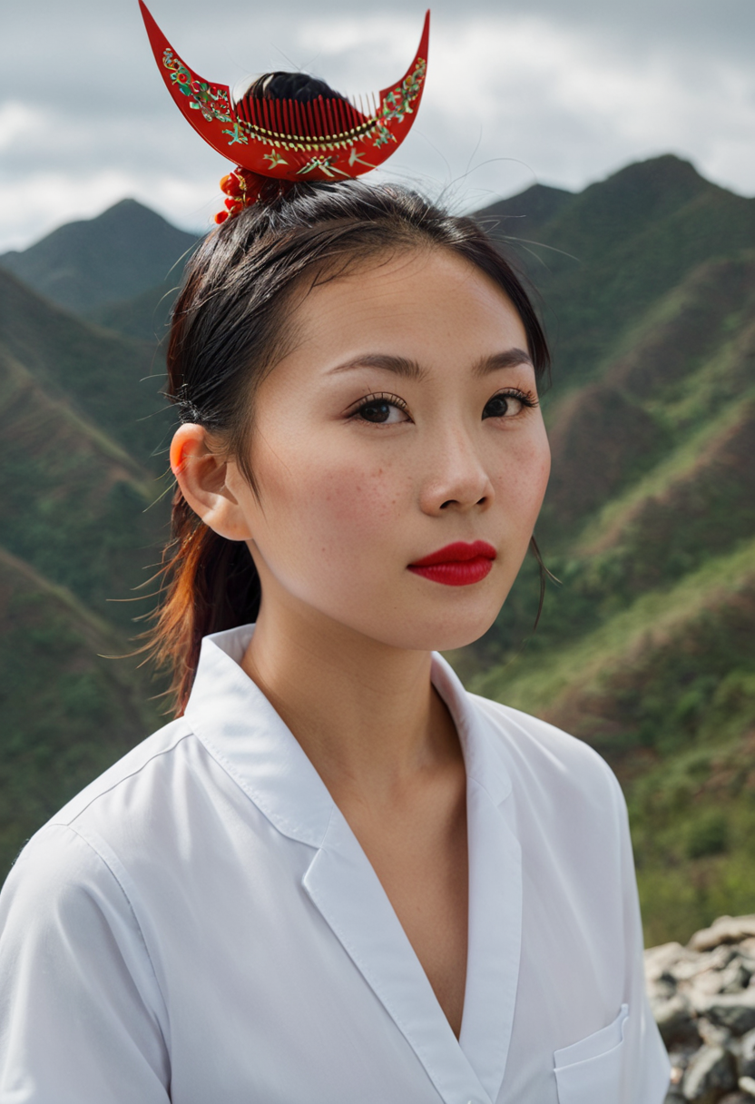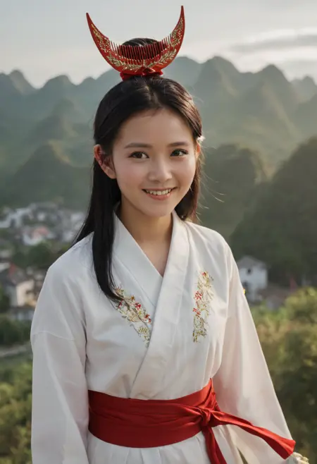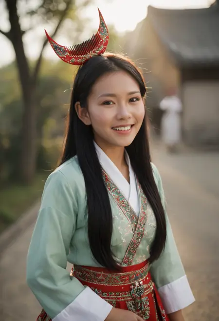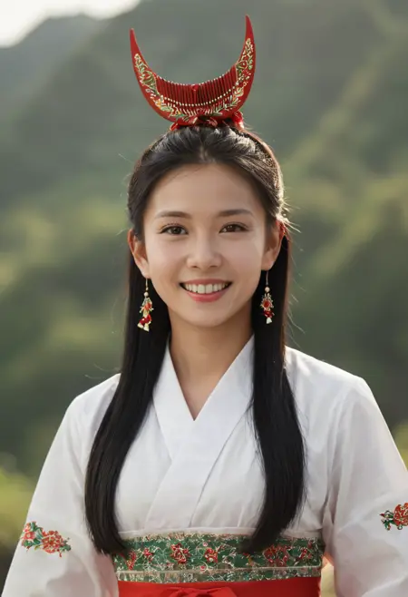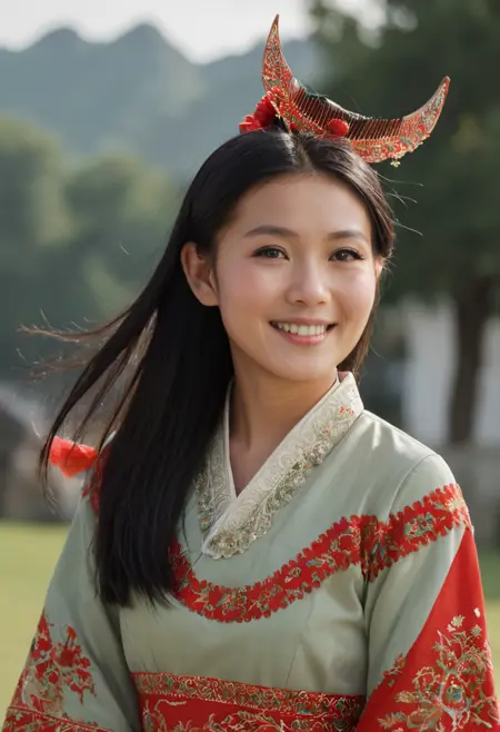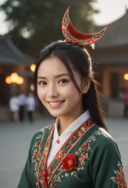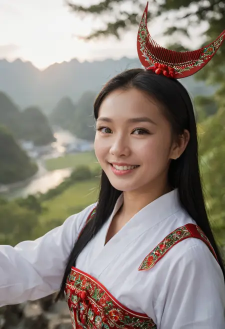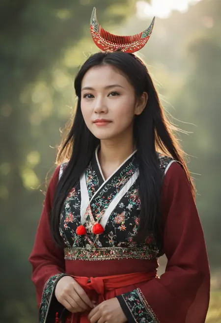 The Waishu Miao half-moon wooden comb LORA. The Waishu Miao, a branch of the Miao ethnic group located in Xingren City, Qianxinan, Guizhou Province, is named for the half-moon shaped wooden comb worn by married women in their hair. This LORA specifically trains on the half-moon shaped wooden comb of the Waishu Miao.