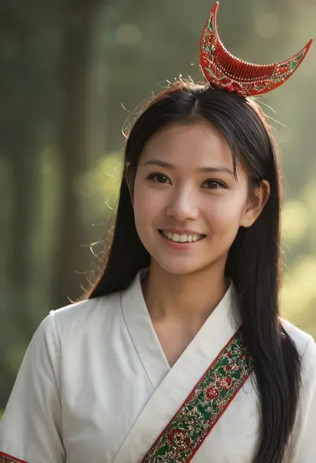 歪梳苗半月形木梳LORA. 귀주성 천신난 흥인 시에 거주하는 마이족의 한 지파인 와이슈 마이는 기혼 여성들이 머리 뒷부분에 반달 모양의 나무 빗을 꽂는 관습에서 이름이 유래했다. 이 LORA는 와이슈 마이의 이 반달 모양 나무 빗에 초점을 맞춰 학습된다.