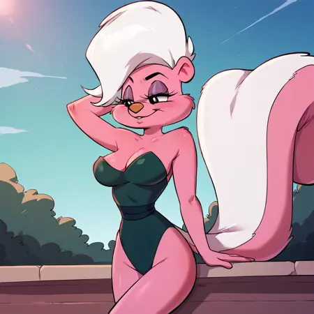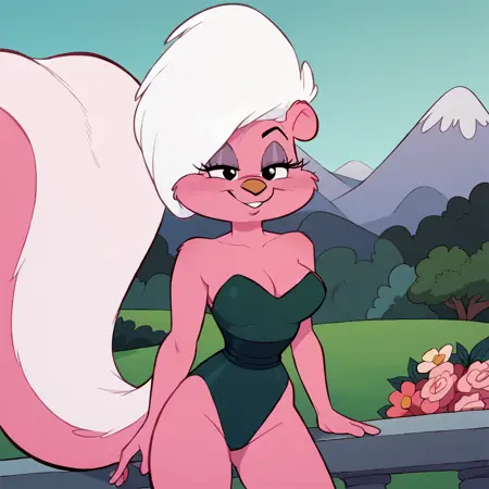 标签:Bimbette,粉红色毛发,臭鼬女孩,白发,毛茸茸的女性,黑眼睛,眼影,