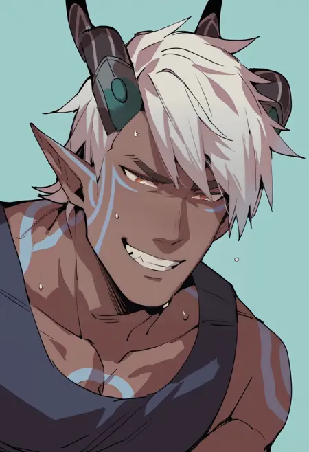 触发词:ethari_tdp,白发,角,尖耳,纹身,深色皮肤男性
