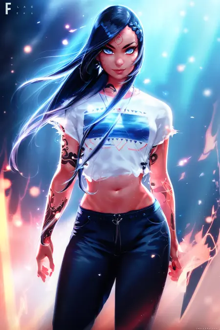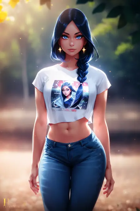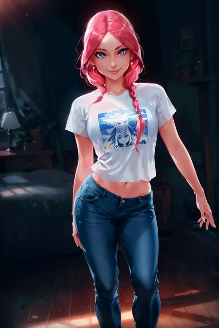 프롬프트: (손 잘 그려짐), (손가락 잘 그려짐), (긴 꼬리 머리), (앞머리), 미소, 프레임 안에, 초고화질, 8K, 걸작, 아름다운 디테일된 얼굴, 미소, 이름 없음, (볼륨 조명), 아름다운 디테일된 눈, (황혼 조명), 사실적인 그림자, (전신:1), (1소녀), (카우보이 샷), 셔츠, 바지, 관객을 바라보는, 완벽한 신체, 몸 잘 그려짐:1, 다리 잘 그려짐:1, 팔 잘 그려짐:1, (GoodhandsV3)