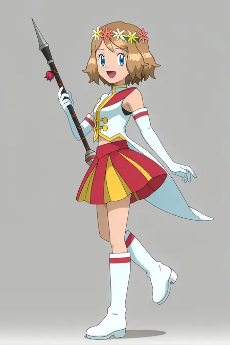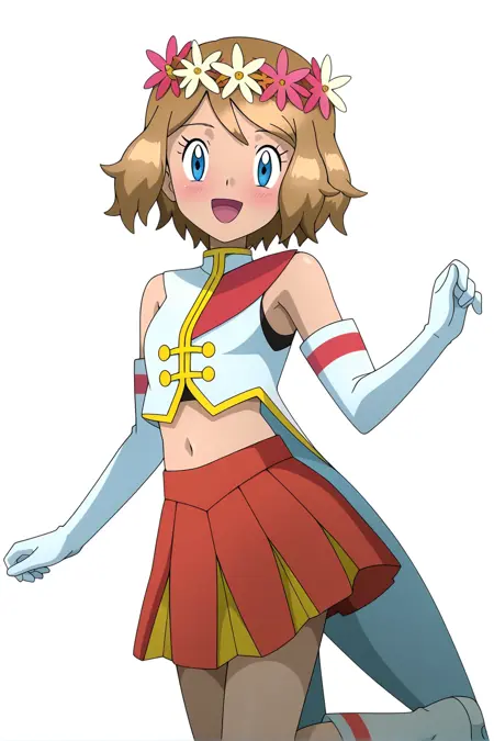 裙子,手套,肚脐,花朵,百褶裙,靴子,无袖,肘部手套,露脐,白手套,超短裙,红裙子,白色鞋履,及膝靴,粉红花朵,花环