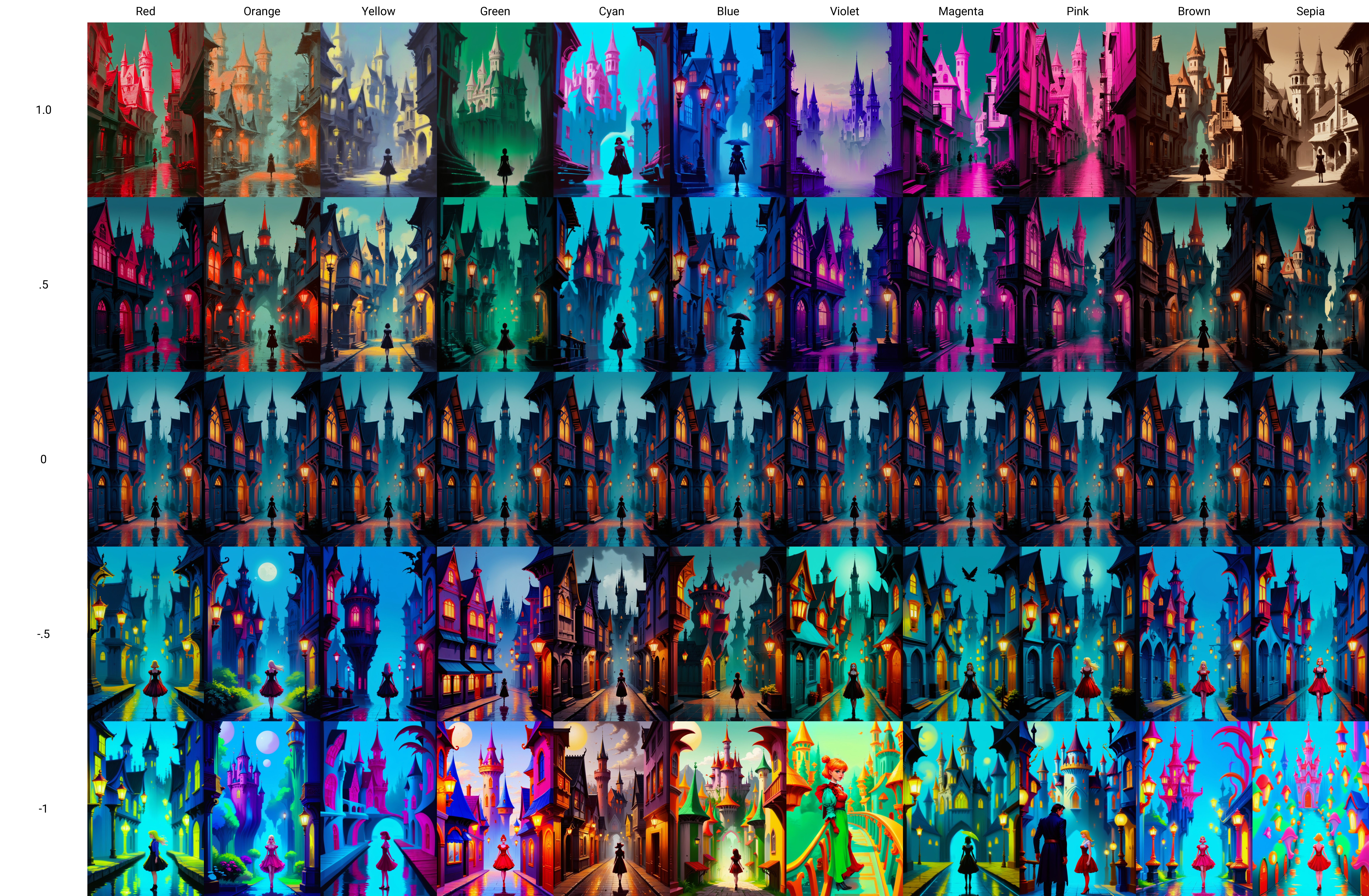 これは画像の色とトーンを調整するためのスライダーLoRAのセットであり、強度-1から1でキャリブレーションされています(ただし、使用しているチェックポイントによって異なる場合があります)。私のテストでは、範囲[-0.5, 0.5]はコンテンツにほとんど影響を与えません。
