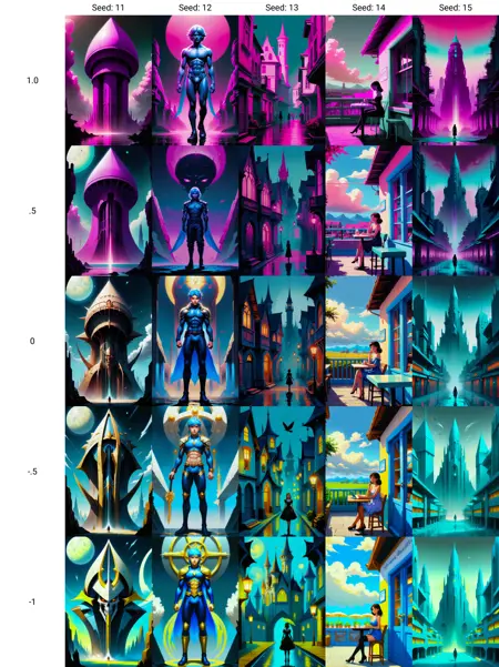 これは画像の色とトーンを調整するためのスライダーLoRAのセットであり、強度-1から1でキャリブレーションされています(ただし、使用しているチェックポイントによって異なる場合があります)。私のテストでは、範囲[-0.5, 0.5]はコンテンツにほとんど影響を与えません。
