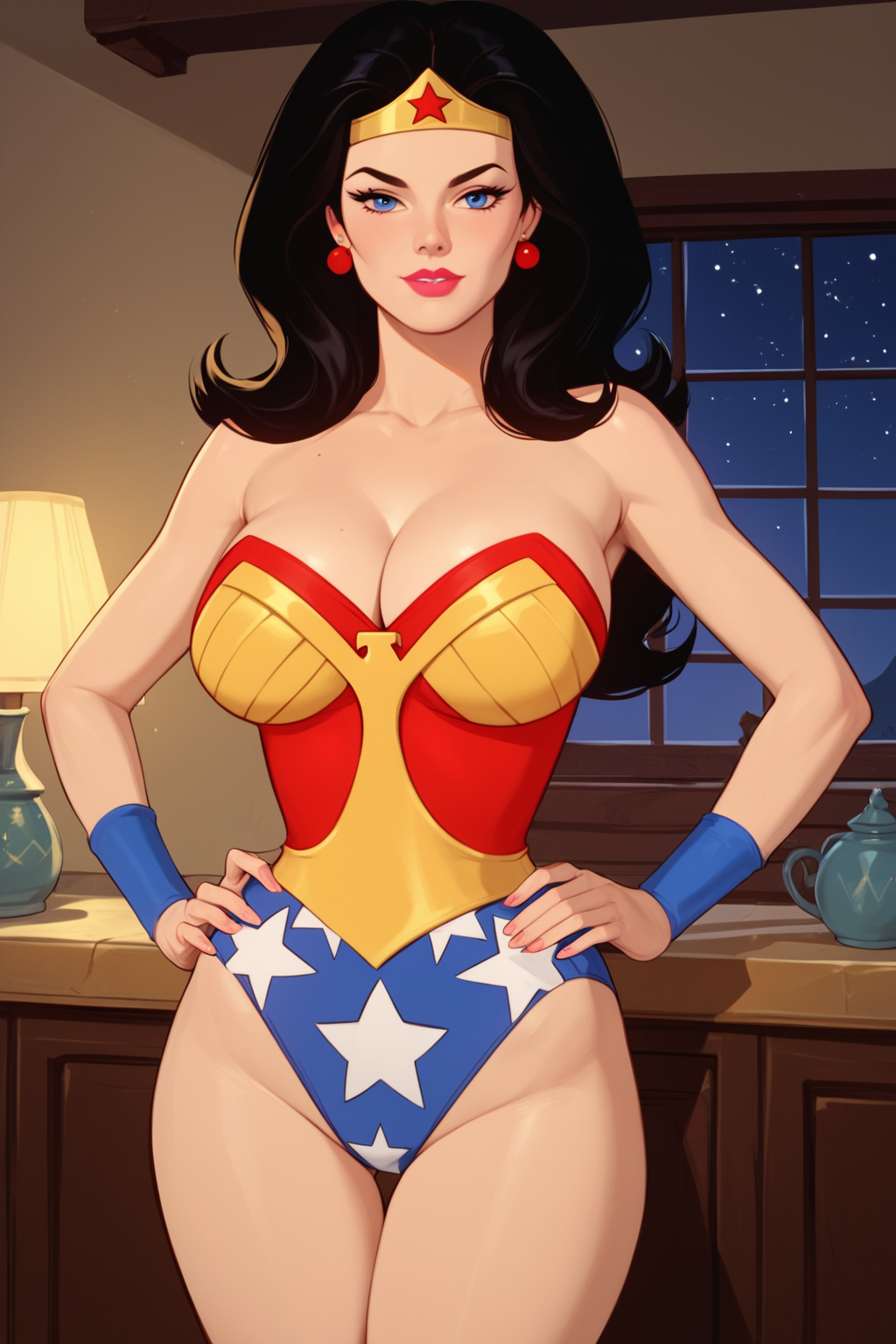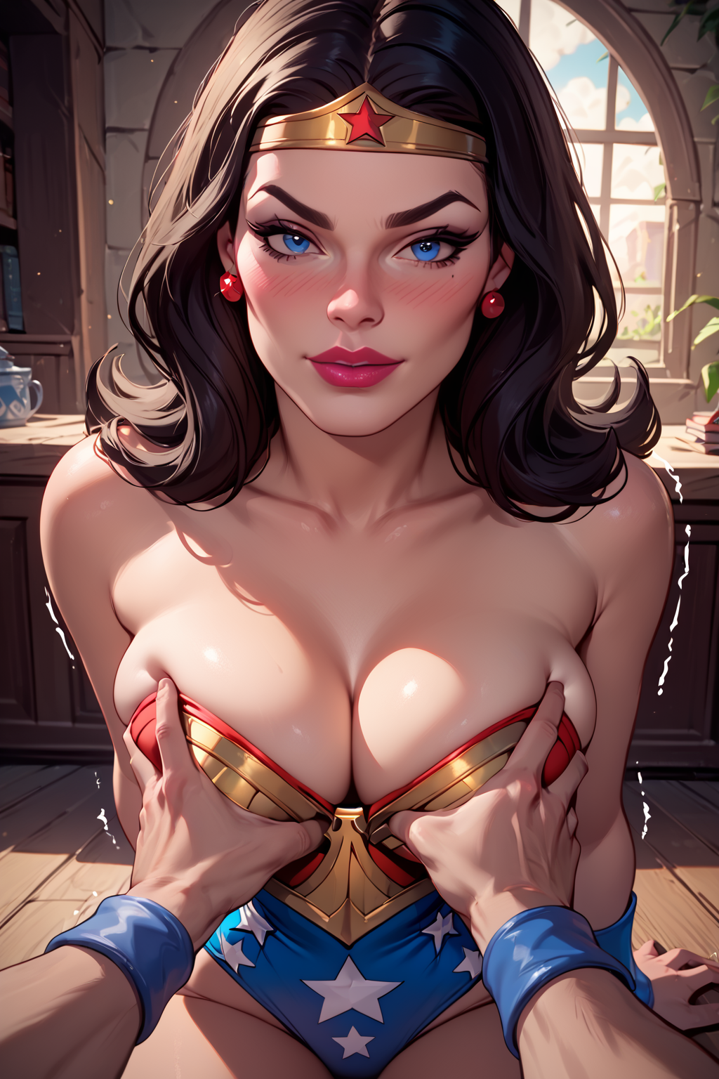 Base Prompt: diana prince, long hair, black hair, blue eyes