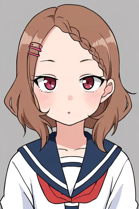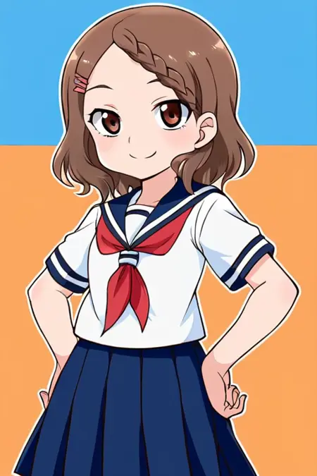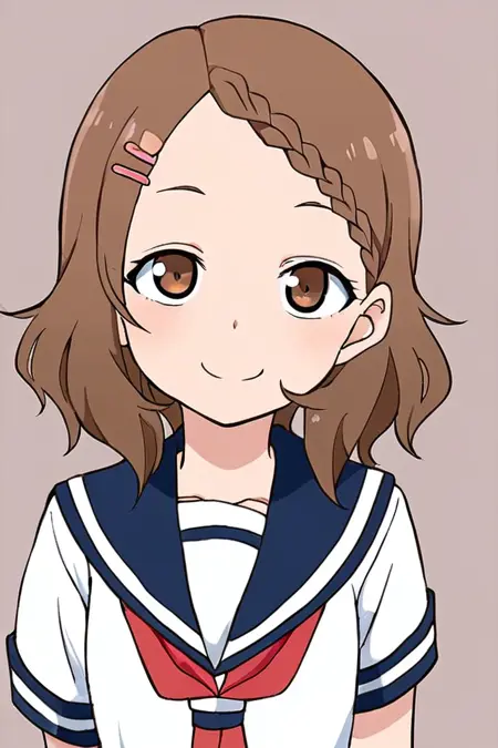 houjou, 1girl, solo, brown hair, serafuku, red neckerchief, smile, blush