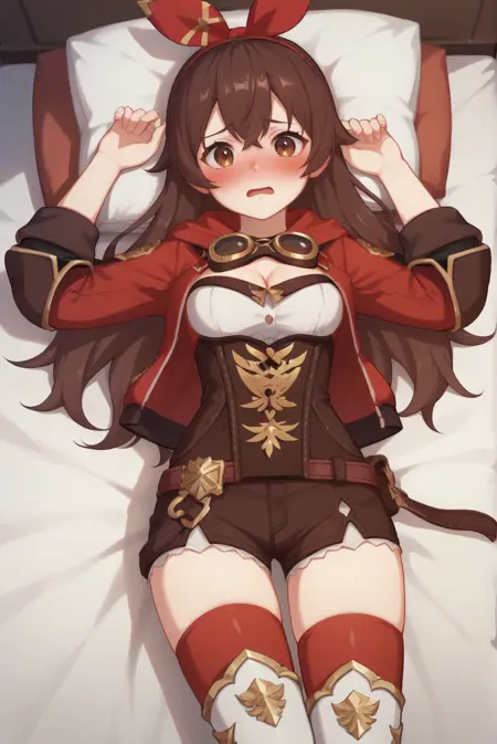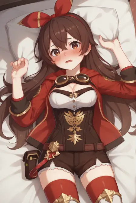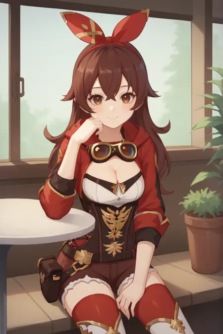 <lora:GenshinAmberXL-v1-06:0.6>, ChopioAmber, brown hair, long hair, sidelocks, brown eyes, red hair bow, hairband, looking at viewer,