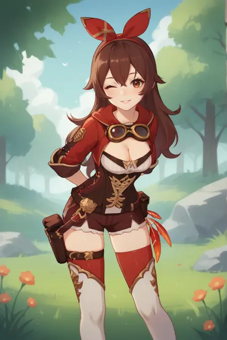 <lora:GenshinAmberXL-v1-06:0.6>, ChopioAmber, 棕色头发,长发,侧发辫,棕眼睛,红色发结,发带,直视观众,