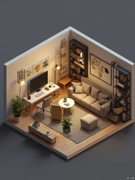 本模型为室内 3D 等距视角,C4D 渲染风格的 LoRA。需开启高分辨率修复(Hires. fix)以确保输出图像质量,欢迎试用并返回更多图片!如有问题可在评论区留言,看到必回,大家多反图哦。