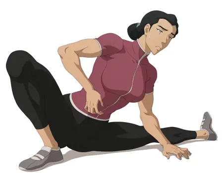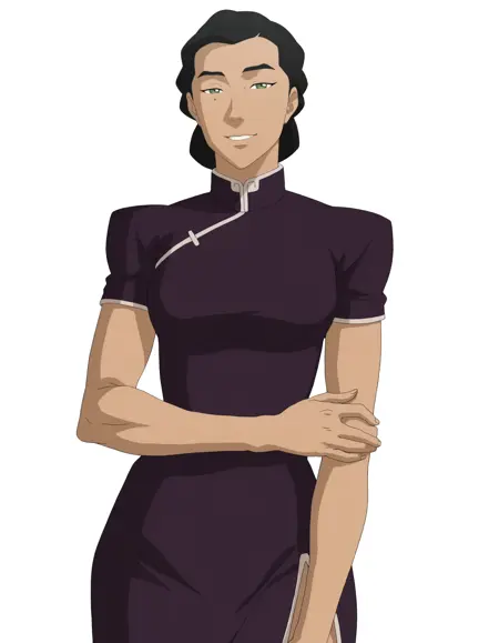 kuvira, 1girl, green eyes, mature female, mole under eye, medium hair, low bun, hair tie,