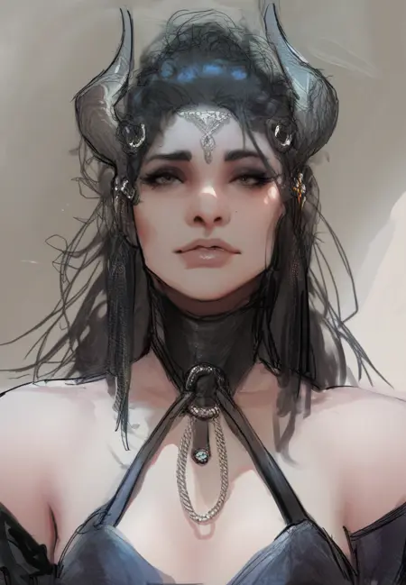 在shiniez / Stjepan-Sejic的图像上训练。请注意,相当多的图像包含类人生物,通常带有角或尾巴,因此某些提示有时会使角色长出角。通常指定human或将horns加入负面提示可以防止这种情况发生。添加sketch可以增强风格,但并非必需。