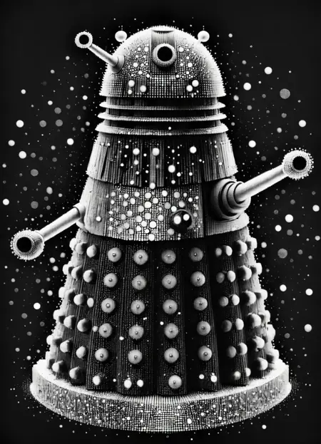 Try any dot art, monochrome, data density related trigger words to get even more out of it. :)