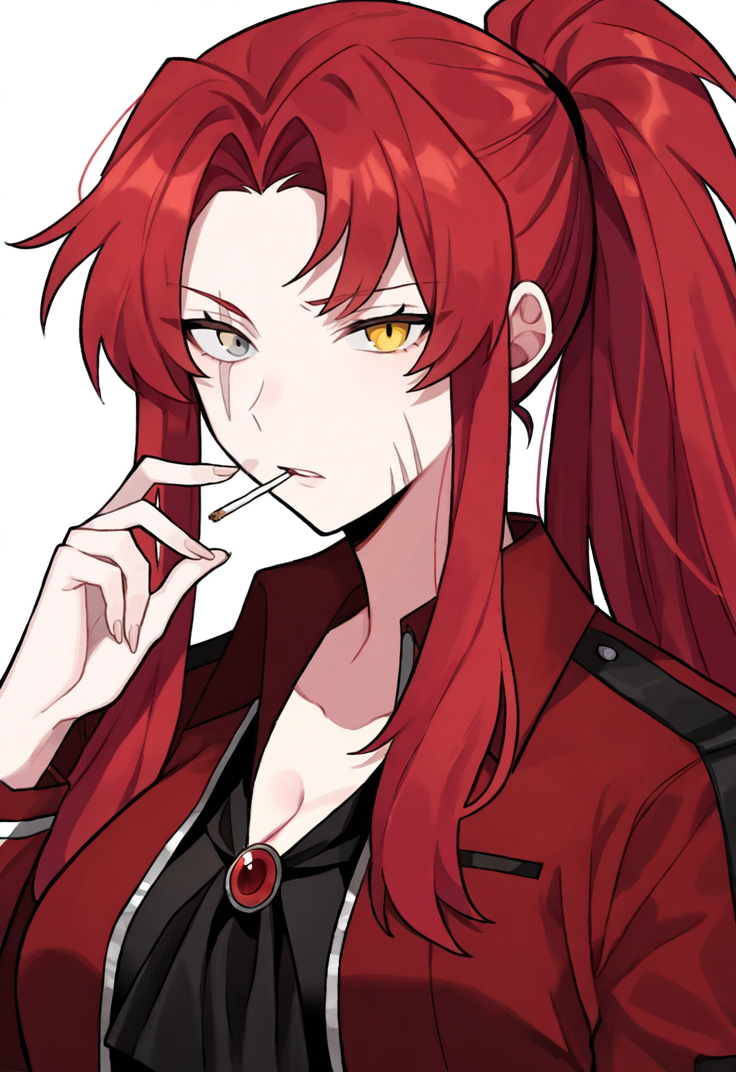 | 训练词汇 | GeburaLC, scars, scar across eye, heterochromia, grey eyes, yellow eyes. black bodysuit, cleavage cutout, red jacket, open jacket, cropped jacket, black footwear, armband已复制! GeburaLOR, scars, scar across eye, heterochromia, grey eyes, yellow eyes, ponytail, red jacket, open jacket, black ascot, dark red pants, black T-shirt, cleavage, black footwear已复制! GeburaEGO, armor, helmet, red mist, red cape, torn clothes, mask, glowing, red theme, black armor已复制! GeburaKali, yellow eyes, black shirt, black pants, black footwear, open coat, grey coat, long coat, black gloves已复制! Mimicry, sword, greatsword已复制! |