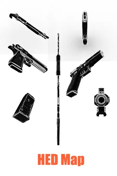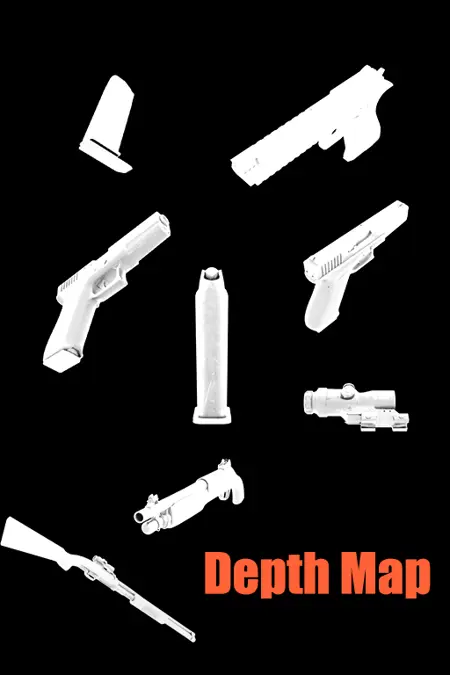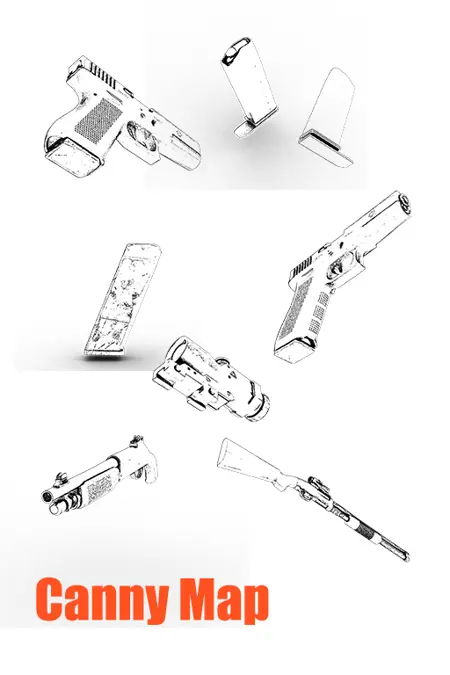 이것은 여러분이 사용할 수 있는 다양한 총기의 지도 세트입니다. Canny, HED, Depth 지도를 선택할 수 있습니다.