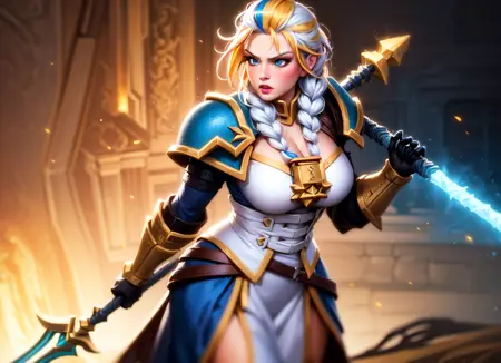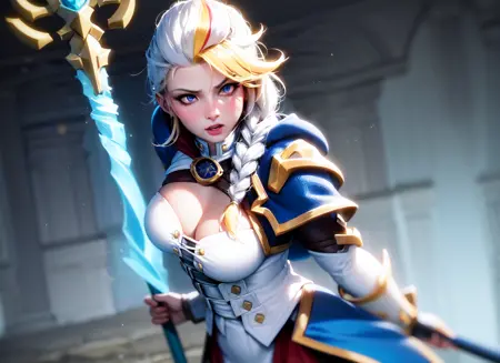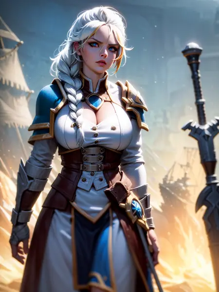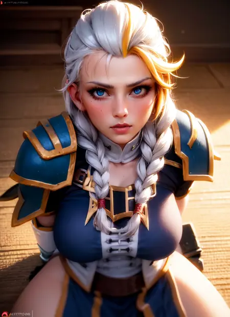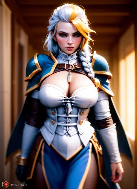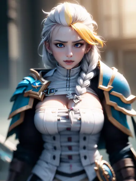 또한, 성인, 여자, 큰 가슴, 흰색 코르셋, 흰색 머리카락, 단일 미끄러짐 머리 결, 방어용 팔패드와 같은 프롬프트를 약간 조정해 임베딩의 강도를 높일 수 있습니다.