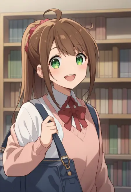 트리거 단어: honshou aru, 긴 머리, 갈색 머리, 꼬리머리, 녹색 눈