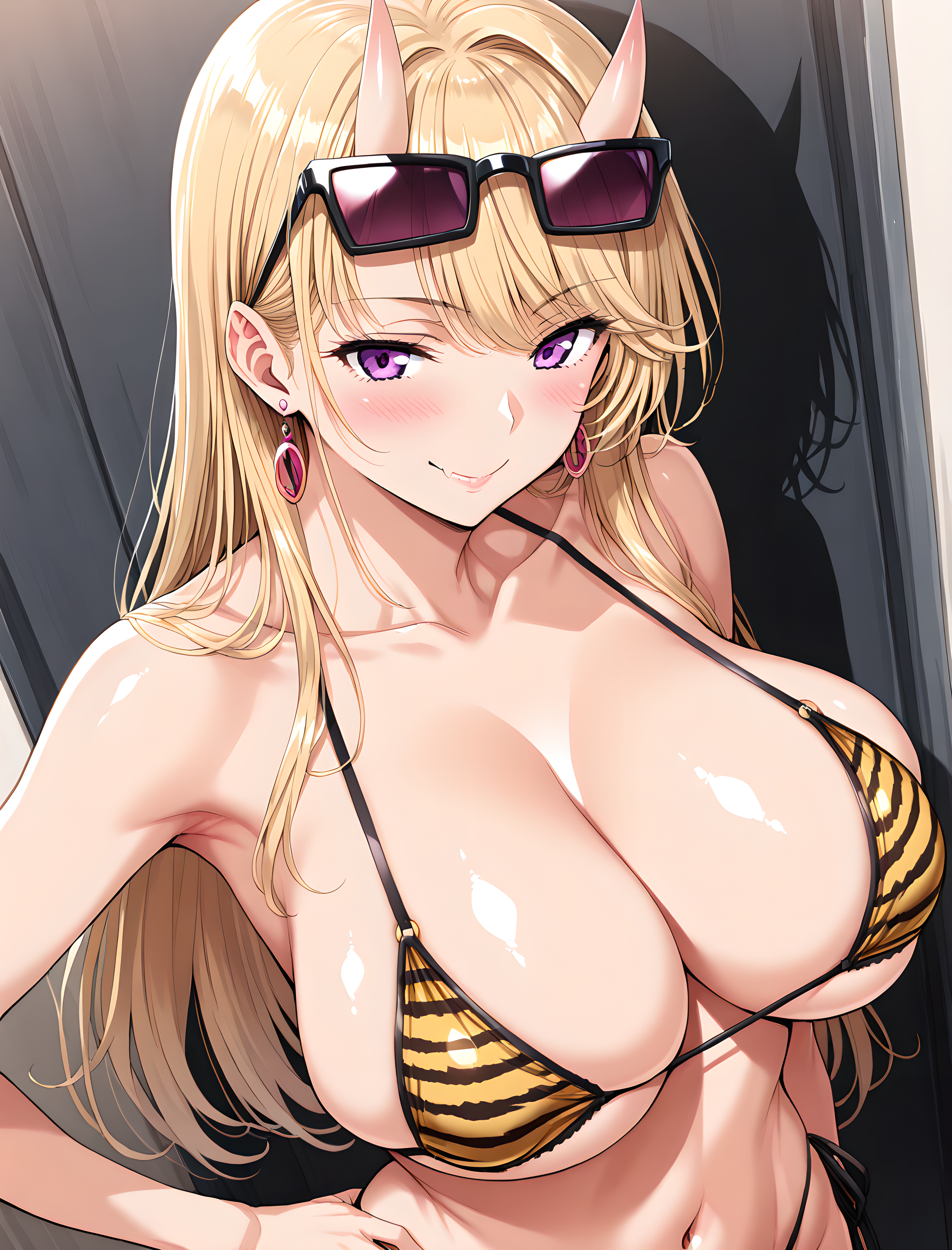활성화 태그는 "francis(taimanin), "로 시작하며, 외모는 "노란 머리카락, 검은 허벅지 긴 양말, 검은 부츠, 비키니, 손가락 없는 장갑, 벨트, 오니 뿔," 그리고 추가로 "선글라스"를 포함합니다.