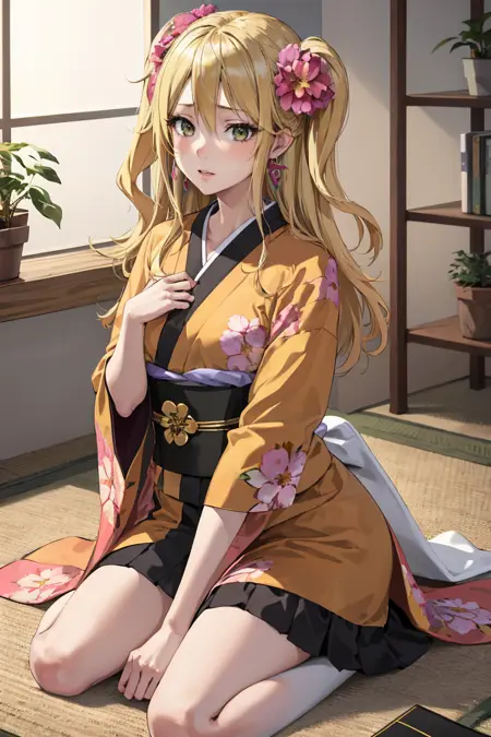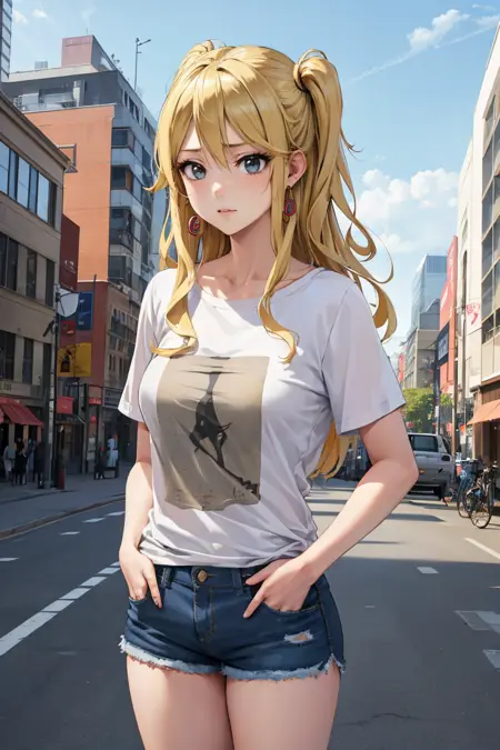 YuzuAihara, blonde hair, long hair, two side up, earrings