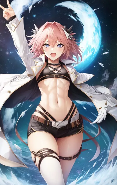 A LoRA of Astolfo (from the Fate series). I recommend checking out both v4 and v3, I wouldn't necessarily say one is better than the other.