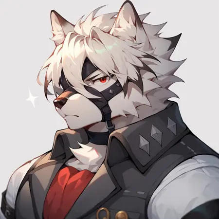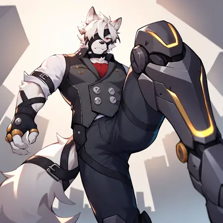 강화 태그는 '안대', '한쪽 눈 가림', '빨간 눈'입니다. 복장에는 '베스트', '검정 바지', '팔찌', '다리띠', '셔츠', '손가락 없음 장갑'을 사용하세요.