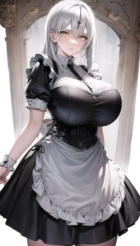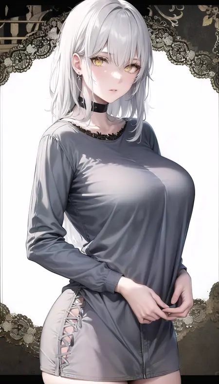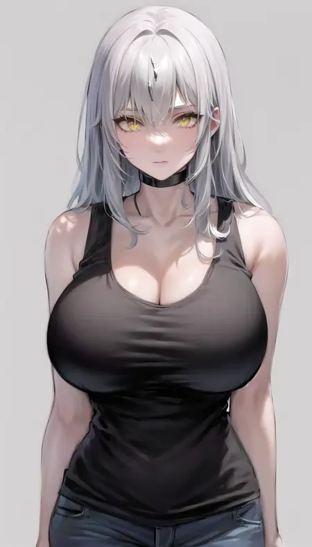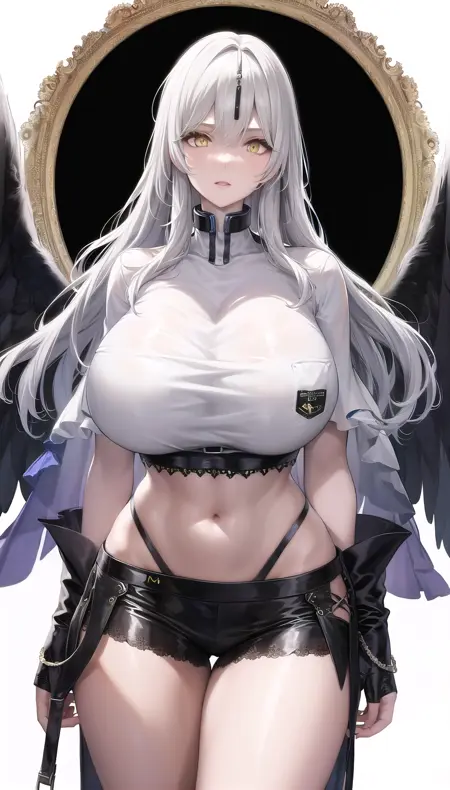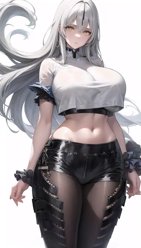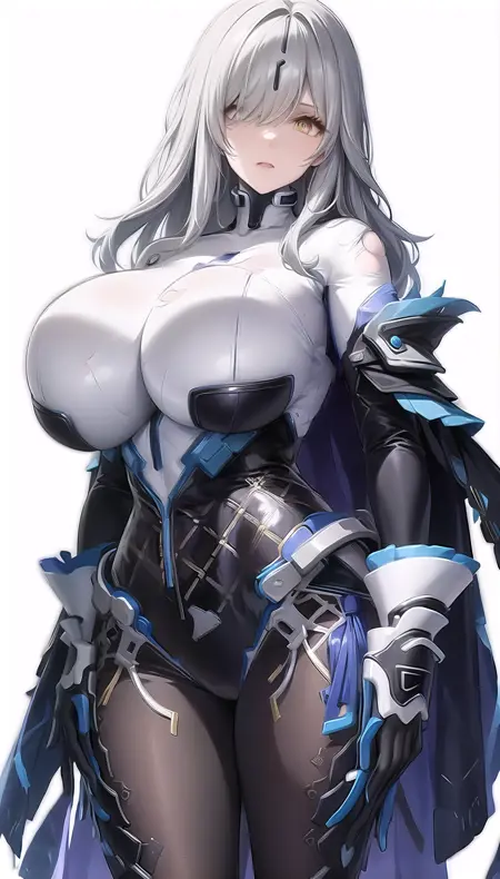 尘白禁区-里芙 无限之视-eyes visible through hair,white hair,yellow eyes,bodysuit, blue gloves,torn cloak,pasties.safetensors