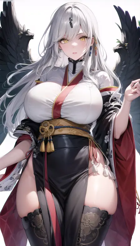 eyes visible through hair,white hair,yellow eyes,