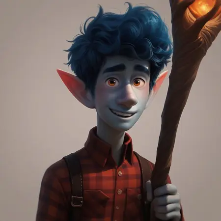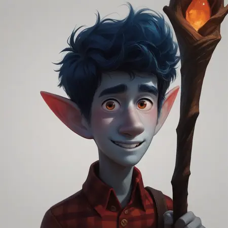 prompt: 1boy, Ian Lightfoot, blue hair, blue skin, pointy ears