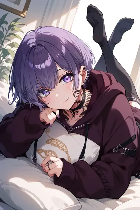 「Sophia」と「1girl」を使用。さまざまな衣装を求める場合は、サンプル画像のプロンプトを参考にすること。ヘアスタイルは短髪、紫髪。すべてうまくいく。エロティックなスタイルにも対応。
