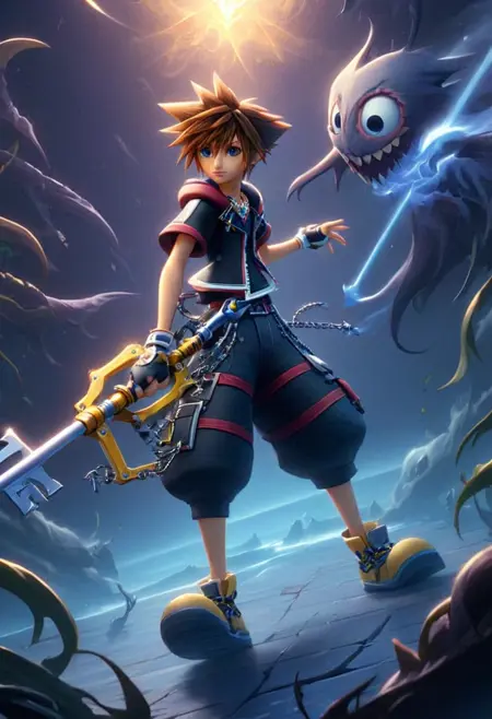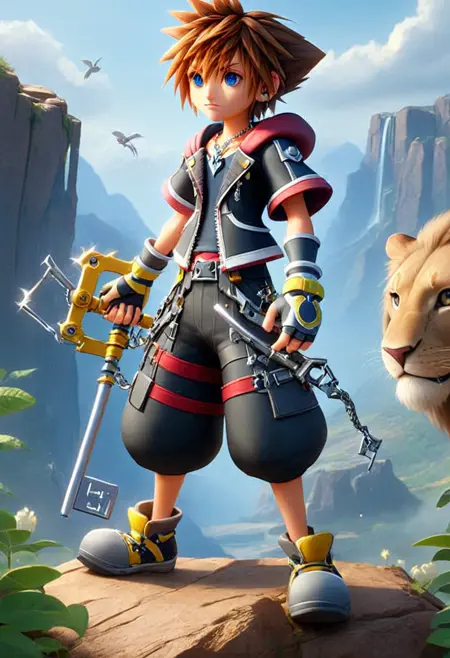 Hey there, Kingdom Hearts fans! I'm all about bringin' Sora to life in all his spiky-haired glory! My latest character model is still a work in progress, but I'm super stoked to be experimenting with different scenarios - with or without his trusty keyblade, of course!