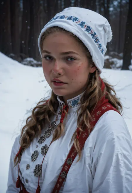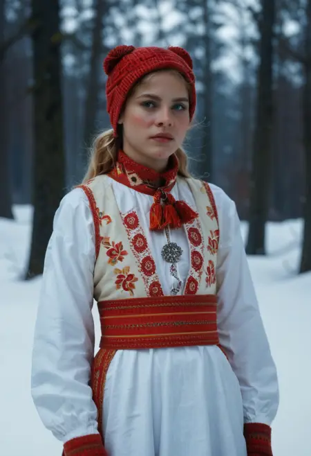 传统挪威女性服饰“布纳德”。使用一名训练者,以540步、6轮训练而成。