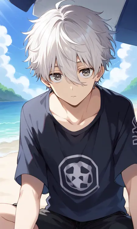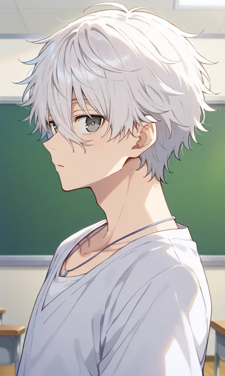 触发词:那智正一郎、白发、发丝遮眼、短发、灰眼睛