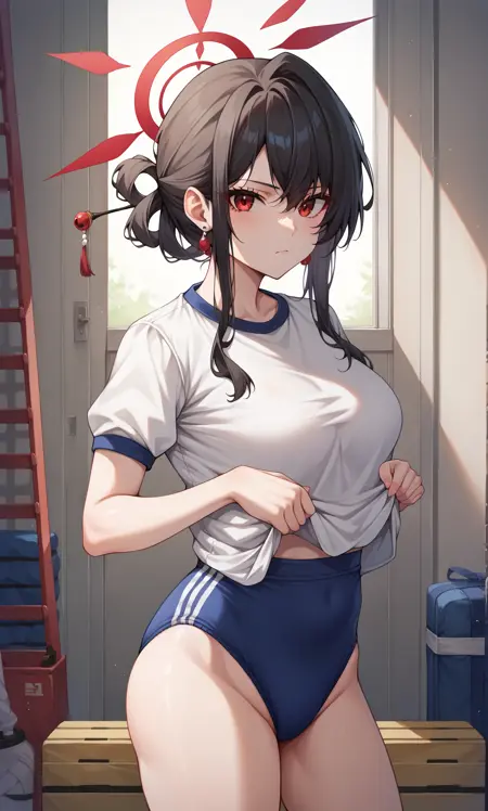 外見:コクリコ、赤い目、黒髪、髪結い、側髪、髪飾り、髪棒、イヤリング、ハロー