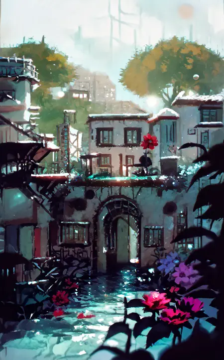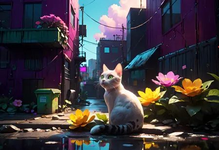 提示:若你不希望出现管道、人类、女孩或电线,可将它们加入负面提示,即使未出现在描述中,花朵依然会显得非常美丽。“lizard”、“insect, bug”并未如预期般生效……