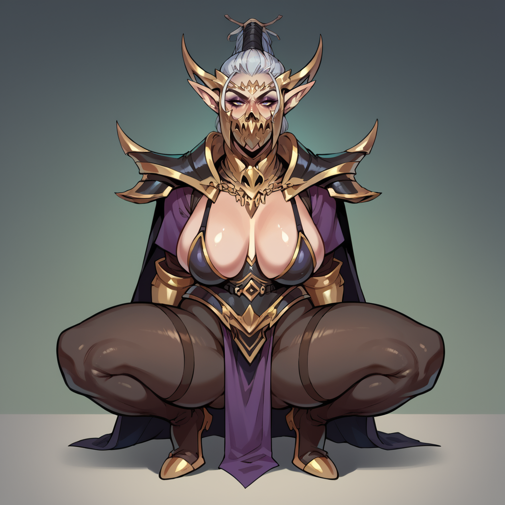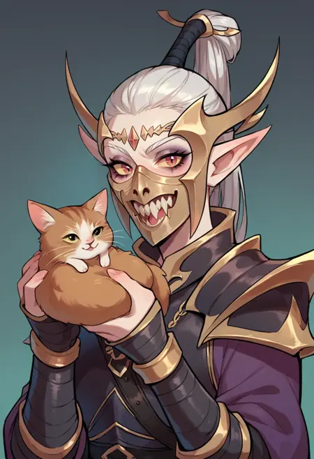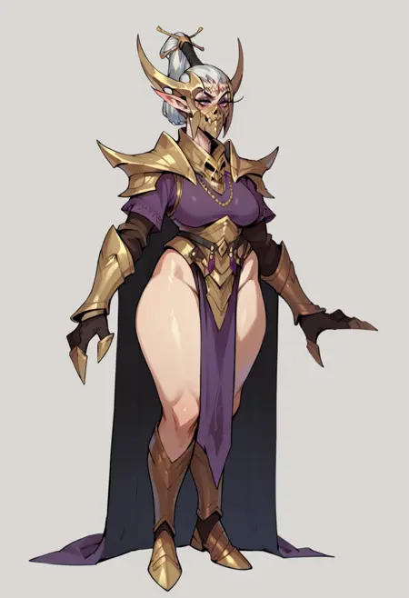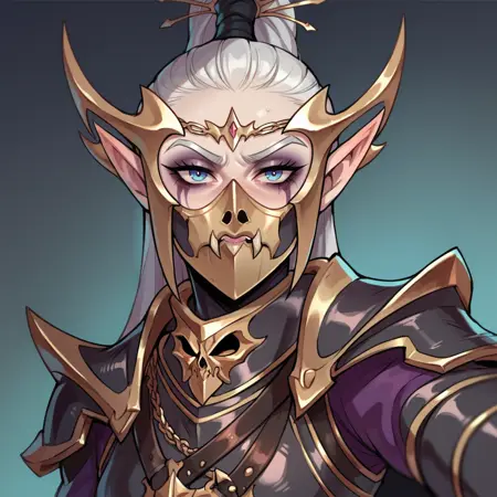 尖耳,苍白肤色,白发,头盔,面具,盔甲,