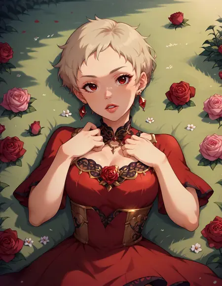 ブロンドの髪、非常に短い髪、赤い目