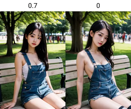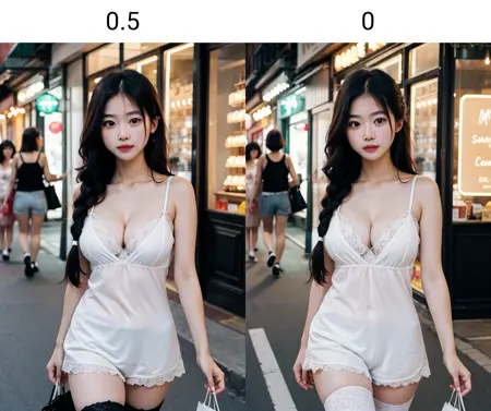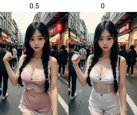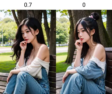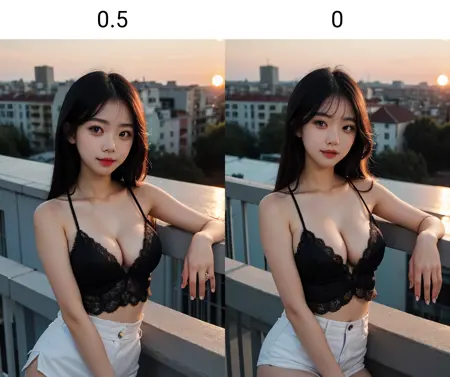 이 모델은 "헤어 높이 슬라이더" LoRA와 동일한 방식으로 학습되지 않았으며, 추출 및 병합된 것입니다. 어떤 것이 더 나은지 확실하지 않으니, 자신이 편안하다고 느끼는 것을 선택하세요. 대부분의 경우, 이 모델은 머리 모양을 조정하고 부드러운 머리카락을 줄이며 머리카락이 쪼그라드는 것을 방지하는 기능만 수행합니다. 머리 꼭대기를 총알 모양처럼 보이지 않고 더 둥글게 보이게 만듭니다. 때로는 머리 위쪽 높이를 낮출 수 있으나, 이는 무작위로 발생합니다. 가중치를 0.7 이상으로 높이는 것은 권장하지 않으며, 노이즈가 지나치게 변할 수 있습니다. 권장 가중치는 0.3이며, 필요하다면 동일한 시드로 0.5를 사용하여 다시 실행하세요.