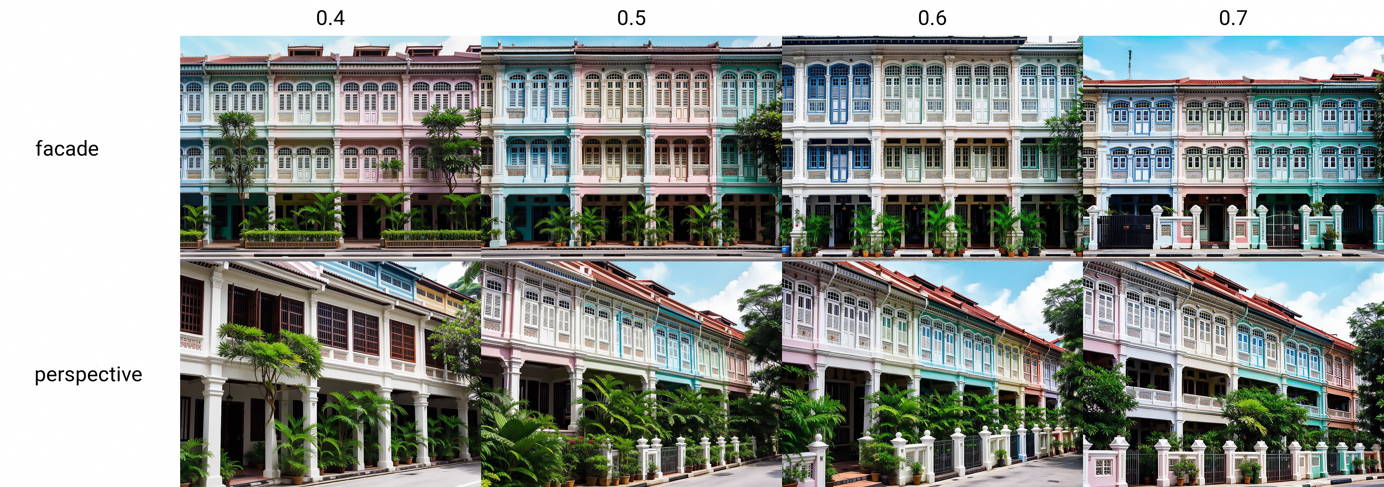 このモデルは、シンガポールの店舗建築スタイルをシミュレートします。