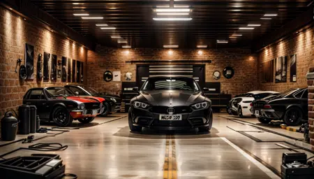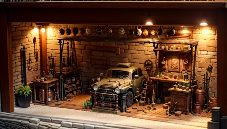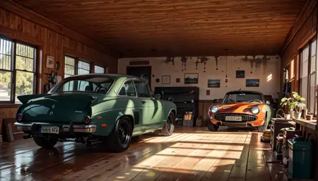 워크숍, 자동차, 실내, 풍경, 차량 초점, 천장 조명
