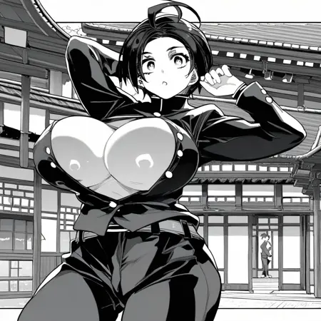 单色、灰度:(( lora:ryozuki_akira:1 ,ryoZuki Akira,正常腰围,宽臀,美丽肌肤,美丽短发,呆毛,女汉子,清澈眼神,锐利眼神,明亮瞳孔,美丽双眸,巨大且尖翘的乳房,自然美,超凡美丽的女性,迷人女性,超级性感女性,欲望之躯,带有挑逗性淫秽体态的性感女性,性感体态,丰腴体态,性感美人,))